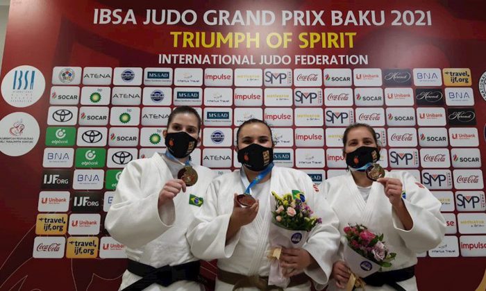 O judô femiinino paralímpico do Brasil conquistou duas medalhas de ouro e mais um bronze no último dia do Grand Prix de Baku, no Azerbaijão, penúltima competição qualificatória para os Jogos de que Tóquio (Japão). A atual campeã mundial e líder no ranking Alana Mandonado foi campeã na categoria até 70 quilos. A outra medalha dourada foi de Meg Emmerich, acima dos 70kg. Também peso pesado, Rebeca Silva assegurou o segundo bronze do país. A paulista Lúcia Araújo (até 57 kg), levou o Brasil ao pódio pela primeira vez com medalha de bronze.
