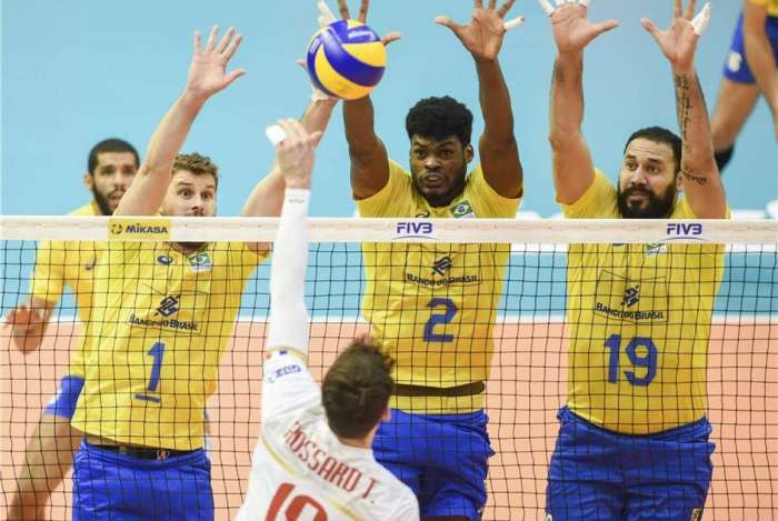 Ainda com a baixa de Maurício Souza, a seleção começou neste sábado com Bruno, Isac, Wallace, Douglas Souza, Lucão, Maurício Borges e o líbero Thalles. Trata-se da mesma escalação de sexta. Neste sábado, o time brasileiro jogou melhor em comparação à última atuação, porém abusou dos erros nos momentos mais importantes, principalmente nos pontos finais dos sets.