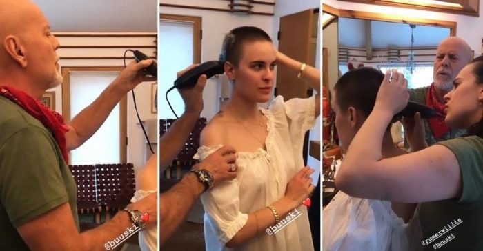Rumer Willis, filha mais velho do ator com Demi Moore, também publicou alguns stories que mostram que ela também ajudou a raspar o cabelo da irmã. Tallulah também publicou uma foto em que já aparece com o cabelo raspado.