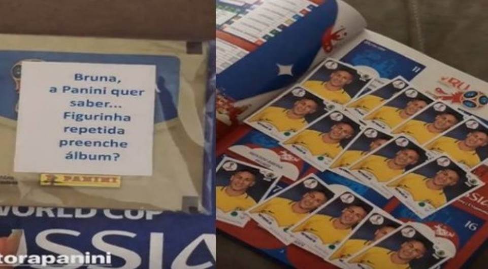 runa publicou o momento em que abria os recebidos em seu Stories do Instagram. Na capa, havia uma pergunta: “Bruna, a Panini quer saber: figurinha repetida completa álbum?”. Então chegou a hora de abrir as figurinhas. “Eu abri o primeiro saquinho, aí olha a primeira figurinha. Eu falei: ‘Meu Deus, não acredito! É muita conexão'”, disse a atriz, até perceber que se tratava de uma pegadinha. “É uma cilada, Bino. É um jogo comigo”.