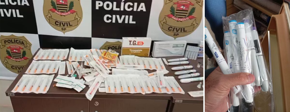 Os policiais acionaram o Setor de Vigilância Sanitária da Prefeitura de Jaboticabal para acompanhar a ocorrência. No local, encontraram caixas recém-abertas com seringas, ampolas e embalagens de medicamentos identificados como Mounjaro, Zepitida e Retatrutide — este último ainda em fase experimental e sem registro na Agência Nacional de Vigilância Sanitária (Anvisa), o que caracteriza risco sanitário e possível crime contra a saúde pública.
