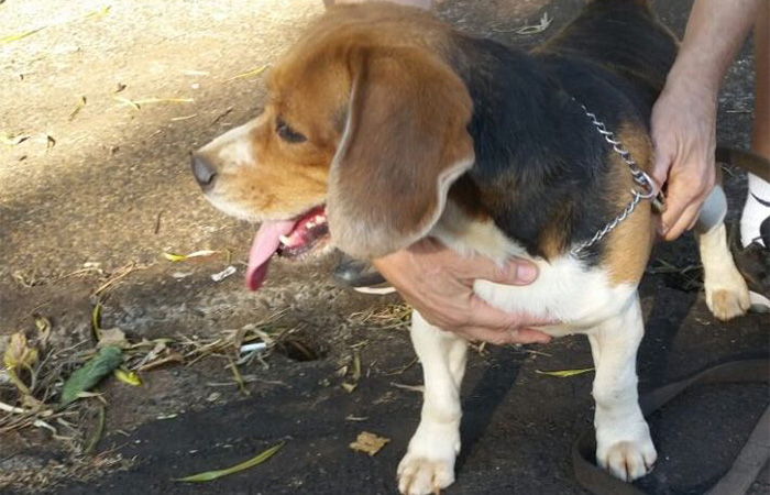 Cãozinho da raça Beagle, resgatado no bairro Lagoinha, é um dos vários animais que fatalmente estão sendo procurados por seus donos