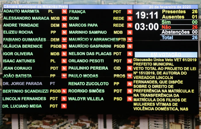 A Câmara de Vereadores derrubou, por unanimidade (26 votos), o veto do prefeito Duar­te Nogueira Júnior (PDSD) ao projeto de lei que prioriza a ma­trícula ou transferência, nas 108 escolas municipais, de crianças vítimas de violência doméstica ou daquelas cujas mães também sofreram este tipo de agressão.