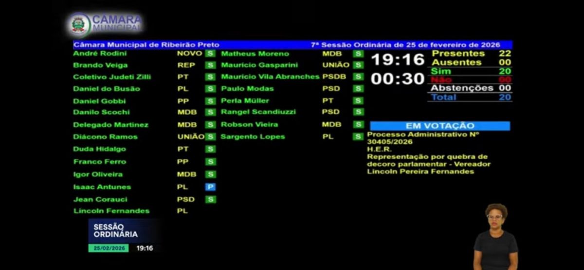 Os vereadores de Ribeirão Preto aprovaram, nesta quarta-feira, 25 de fevereiro, por unanimidade, a abertura de processo de investigação contra o vereador Lincoln Fernandes (PL), por suposta prática de rachadinha em seu gabinete. A investigação será feita pelo Conselho de Ética e Decoro Parlamentar a quem caberá instaurar uma Comissão Processante (CP) para investigar se as denúncias têm fundamento, ouvir todas parte envolvidas no processo e dar um parecer sobre o caso.
