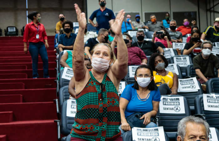 A presença foi limitada a 40% da ocupação do plenário conforme determina o protoco­lo sanitário do Plano São Paulo de combate ao coronavírus.