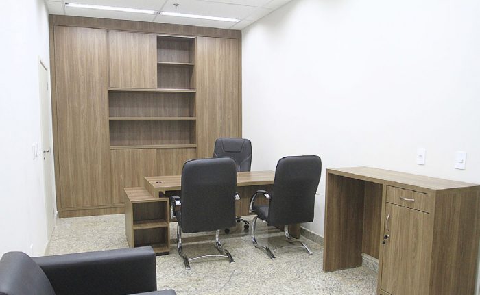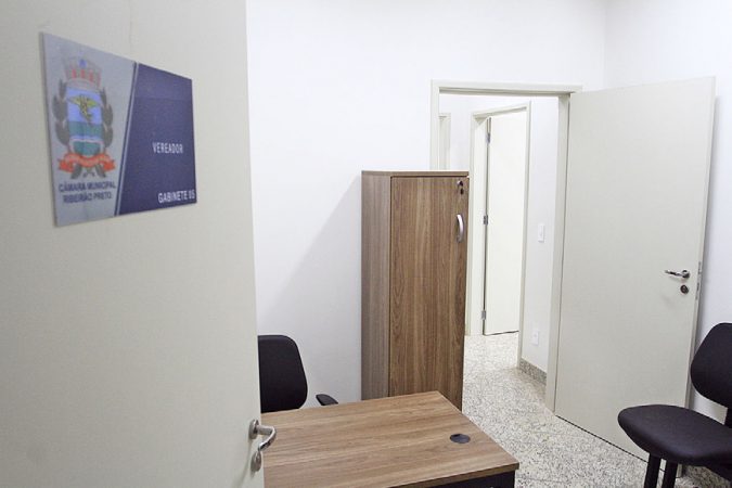 Nesta quarta-feira, 14 de agosto, a equipe do jornal visitou o primeiro gabinete do prédio, o de número 5, já com todos os móveis instalados. Com três salas, recepção, sala de assessores, gabinete do vereador e dois banheiros, um deles privativo do parlamentar, têm modernos móveis e bancadas MDF – carvalho-munique-design. Também possui vários armários e modernas cadeiras em couro.