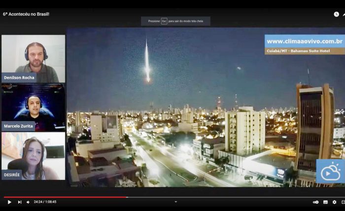 “Então, o meteoro é apenas o fenômeno luminoso, nada mais. Meteoro não é sólido, não é líquido e nem gasoso, é apenas luz. Popularmente, o meteoro é também chamado de estrela cadente”, explica o astrônomo. Especialistas do Clima ao Vivo, Climatempo e Bramon analisam as principais imagens capturadas por câmeras de monitoramento climático e astronômico.