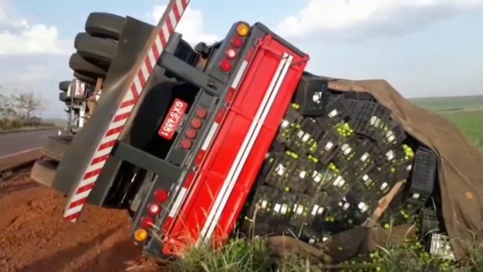 Um caminhão de um produtor com uma carga de limão thaiti, que deixou Monte Alto com destino a Belo Horizonte, tombou no km 4 da  rodovia Mário Donegá em Ribeirão Preto, na tarde desta quarta-feira (2).