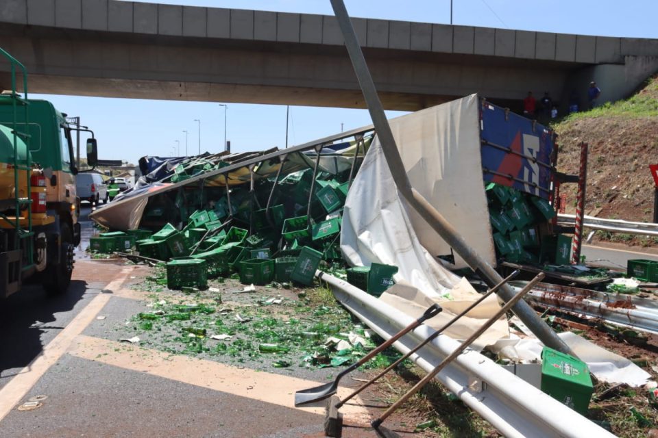 Na manhã deste sábado (25), um caminhão carregado de cerveja tombou no Trevo Waldo Adalberto Silveira, alça de acesso à Rodovia Abraão Assed (SP – 333). Equipes do Corpo de Bombeiros e da polícia foram direcionadas ao local para lidar com a situação.