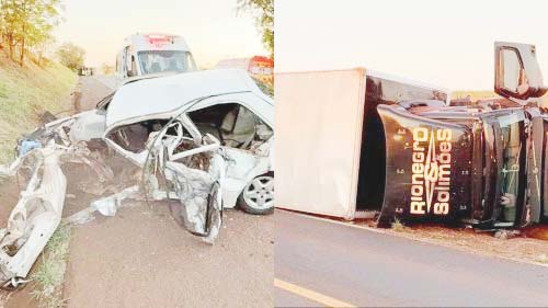 O veículo colidiu com um carro que levava três pessoas – duas delas ficaram em estado grave.