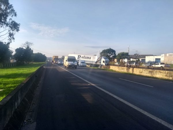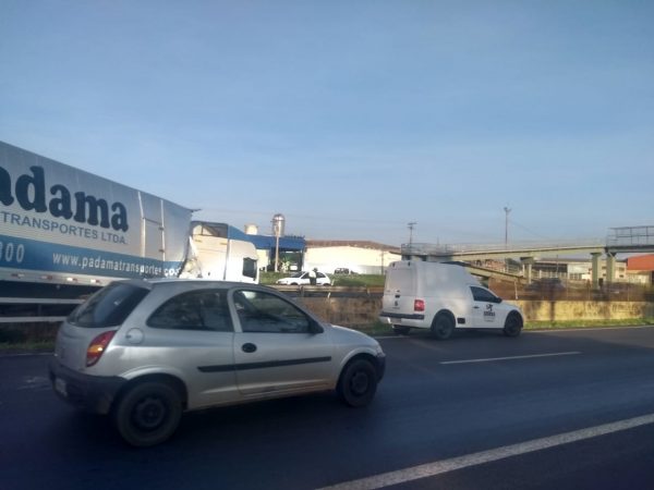 A colisão, com uma mureta que divide as pistas, provocou a interdição de uma das faixas da rodovia.