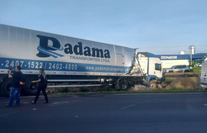 O motorista não se feriu e saiu da cabine por meios próprios.