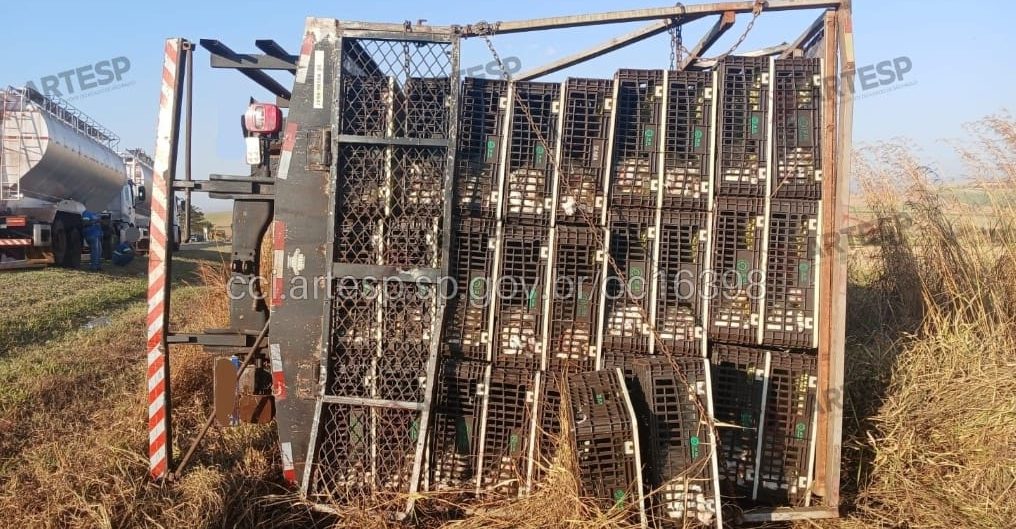 Carga de aves seria transferida para outro caminhão que seguiria viagem (Foto: Artesp/Divulgação)