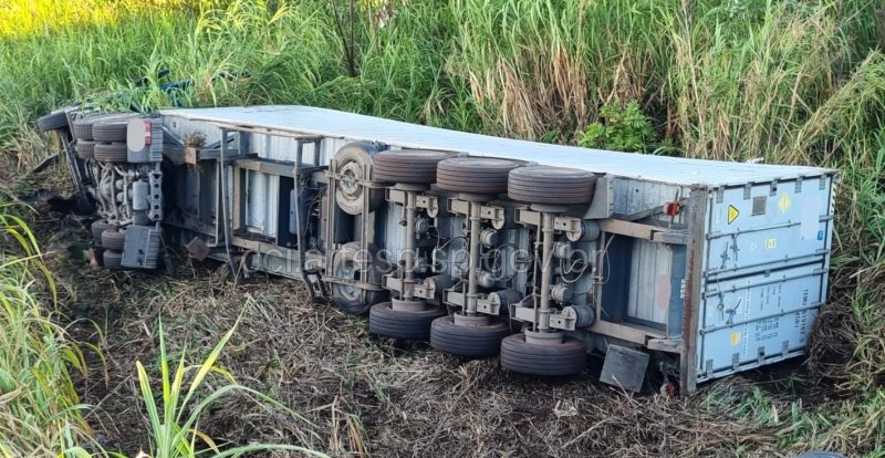 Um caminhão tombou, na madrugada desta quarta-feira (26). O acidente ocorreu por volta de 05h00 na Rodovia Anhanguera (SP-330), pista Sul, em Jardinópolis.