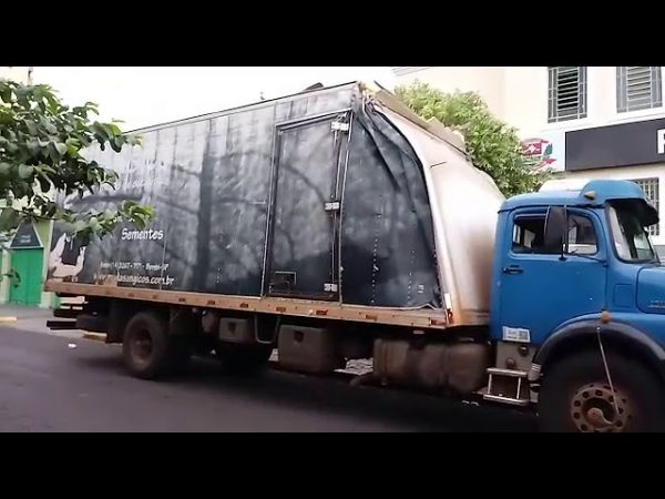 O caminhão plotado na estrutura de carregamento indicava “transportes de sementes”, mas a carga que foi levada continha móveis, eletrodomésticos e eletrônicos de uma rede de varejo.