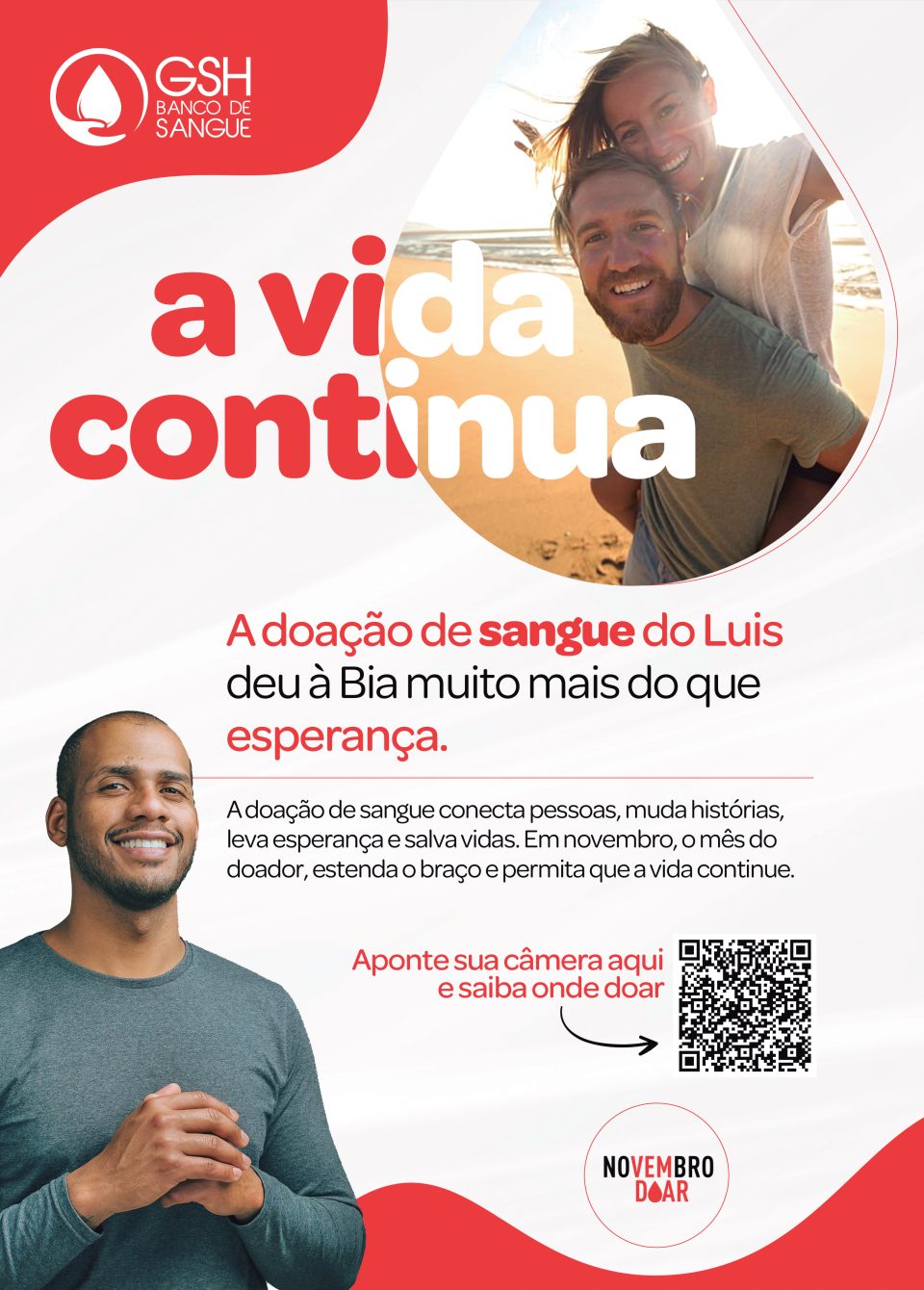 Campanha “Novembro vem doar – A vida continua” – Essas são algumas das emocionantes histórias que o Grupo GSH e seus Bancos de Sague pelo país estão contando em suas redes sociais ao longo deste mês, como parte da campanha “Novembro vem doar – A vida continua”.