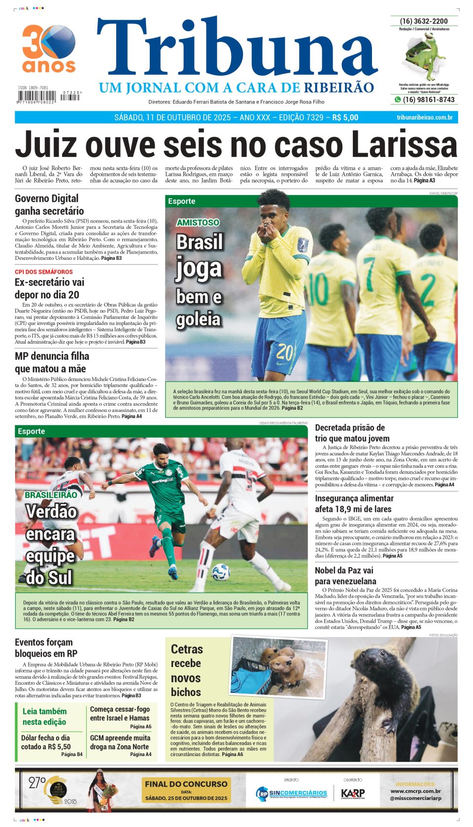 Capa do dia 11/10/2025