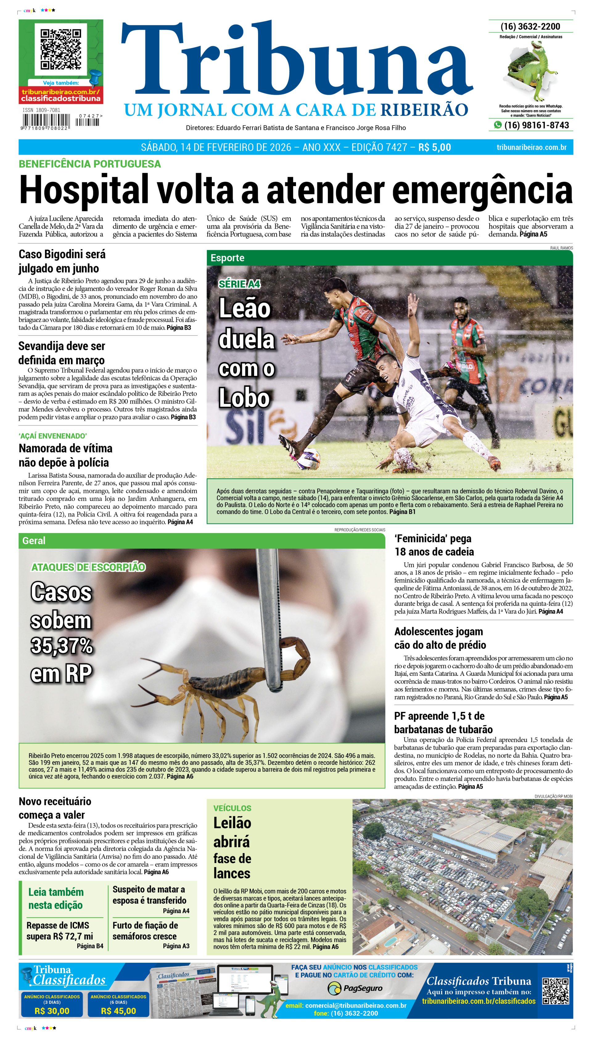 CapasCapa do dia 14 de fevereiro de 2026 14 de fevereiro de 2026 07:0213 de fevereiro de 2026 20:55 Compartilhar0