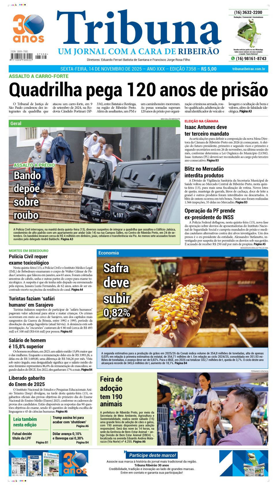 Capa do dia 14 de novembro de 2025