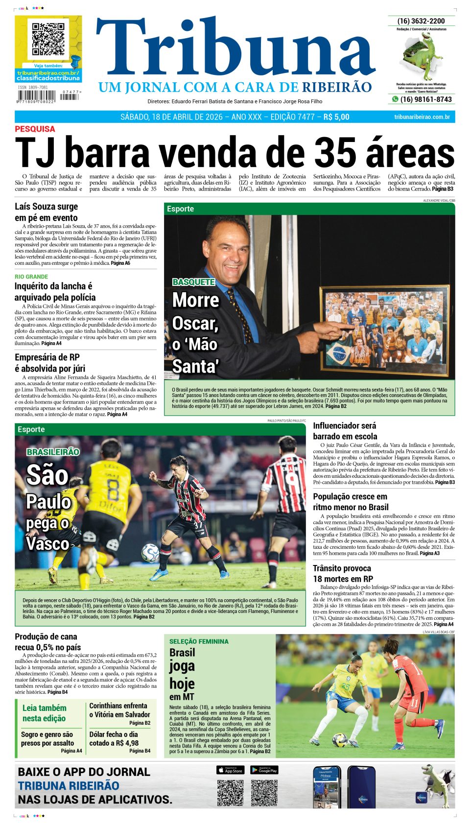 Capa do dia 18 de abril de 2026