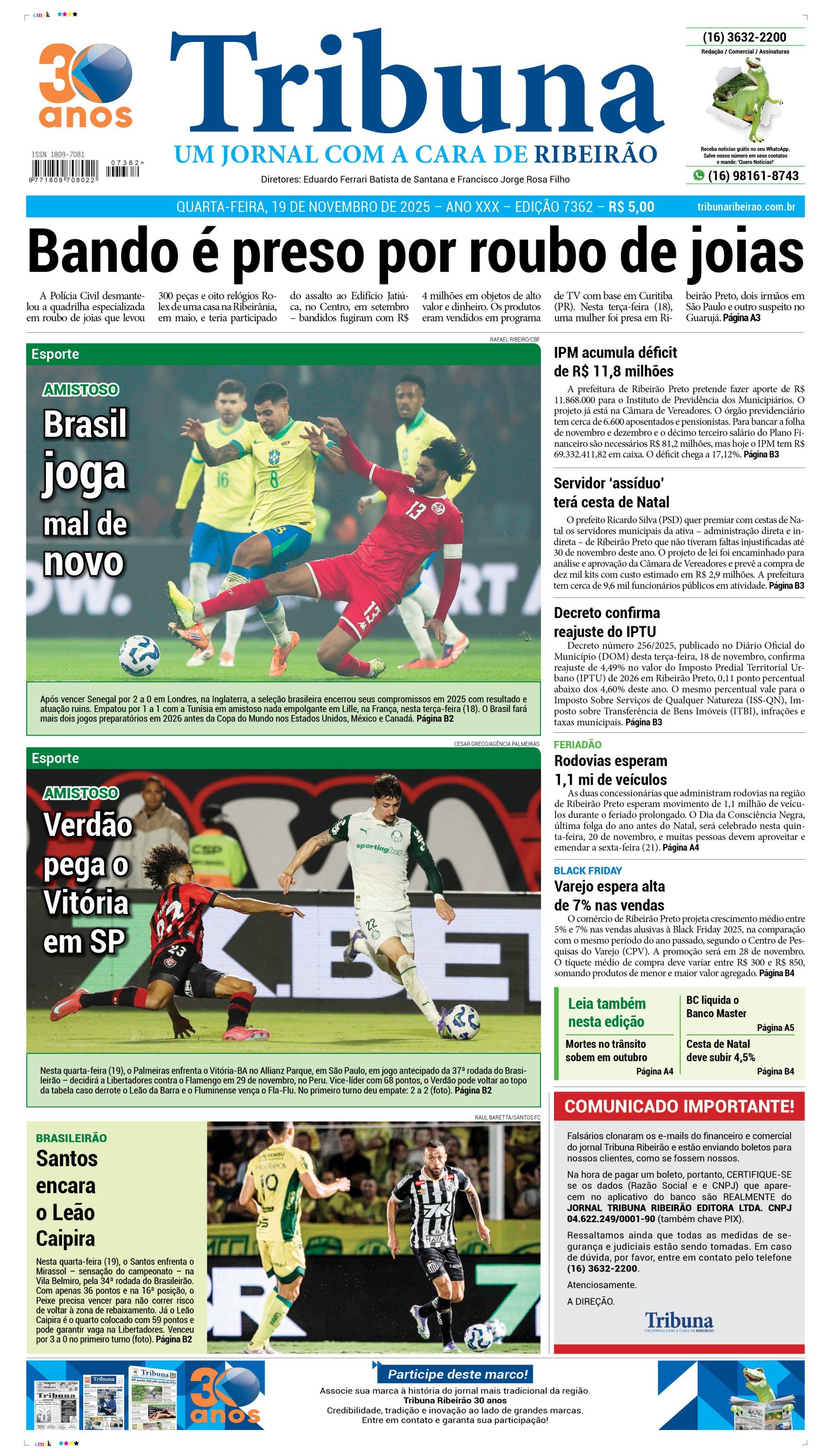 Capa do dia 19 de novembro de 2025