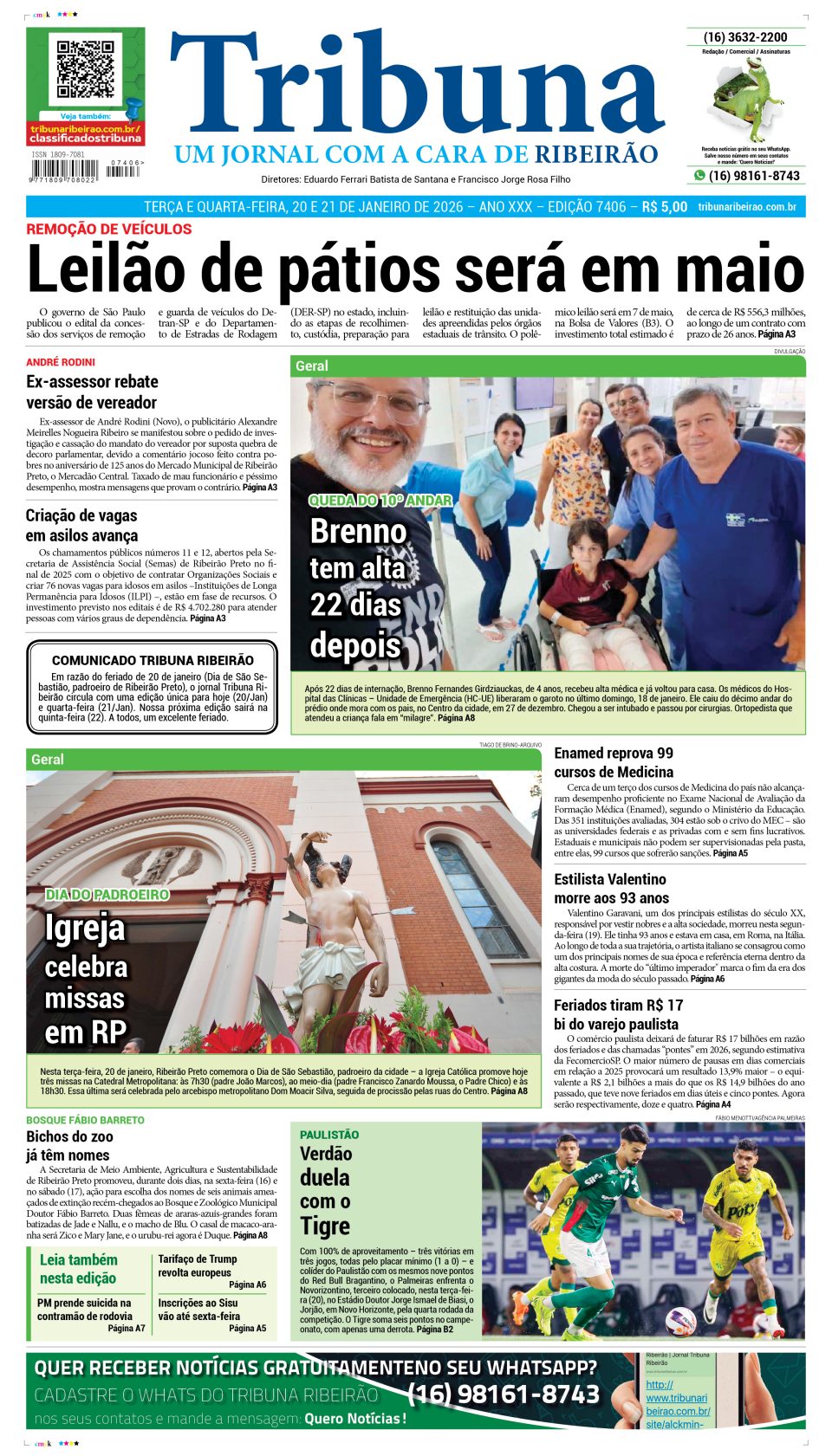 Capa do dia 20 de janeiro de 2026
