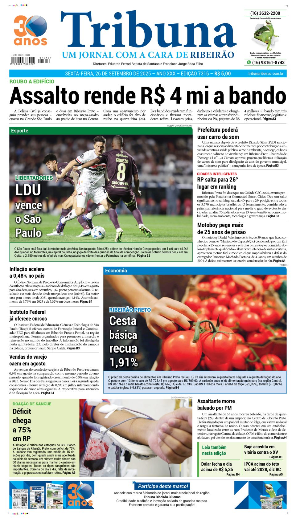 Capa do dia 26 de Setembro de 2025