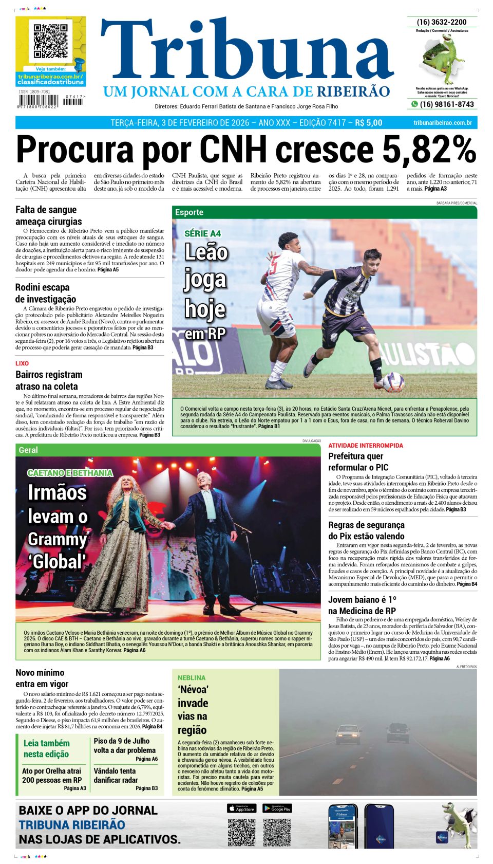 Capa do dia 3 de fevereiro de 2026