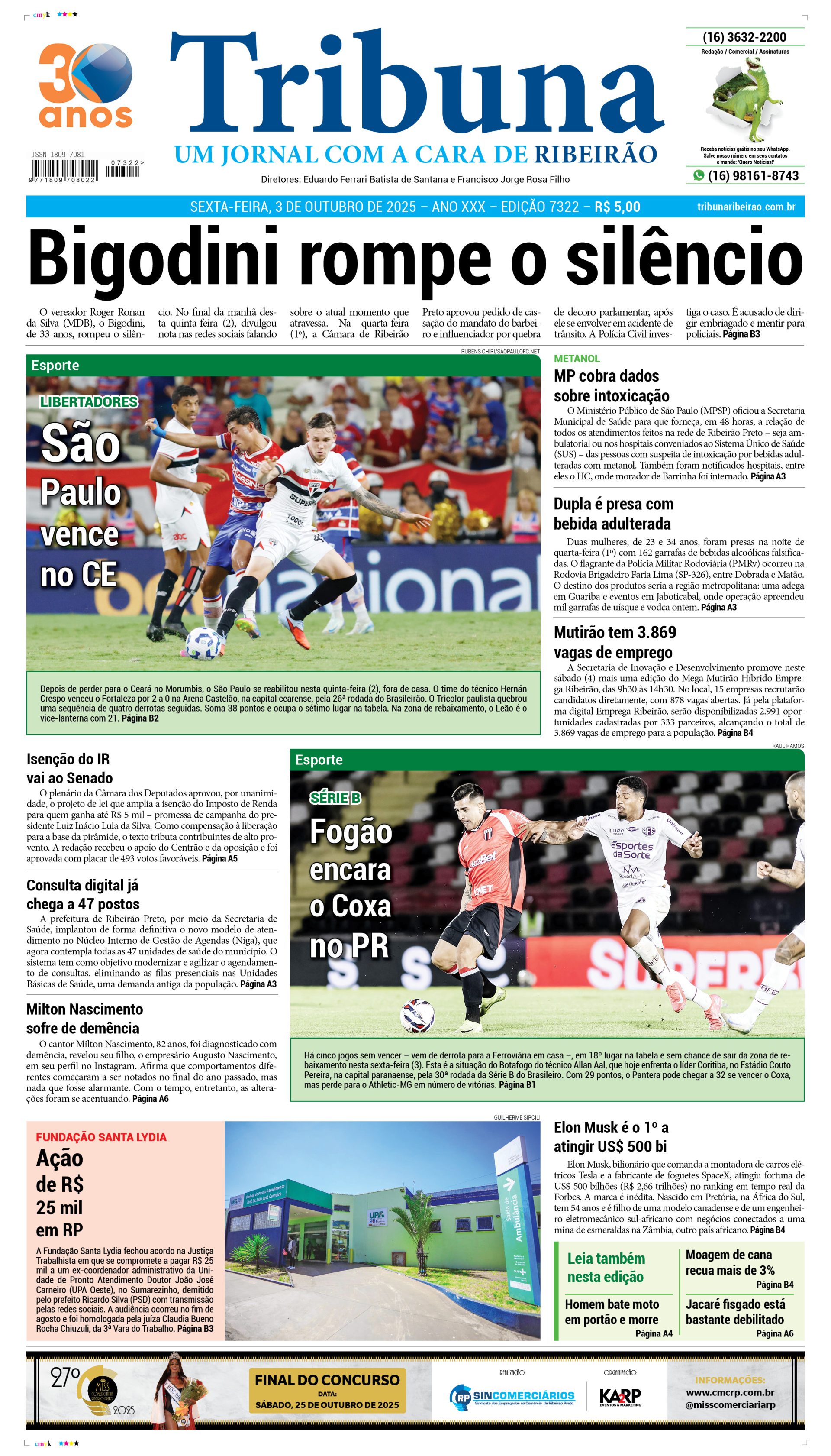 CapasCapa do dia 3 de outubro de 2025 3 de outubro de 2025 07:002 de outubro de 2025 23:58 Compartilhar0