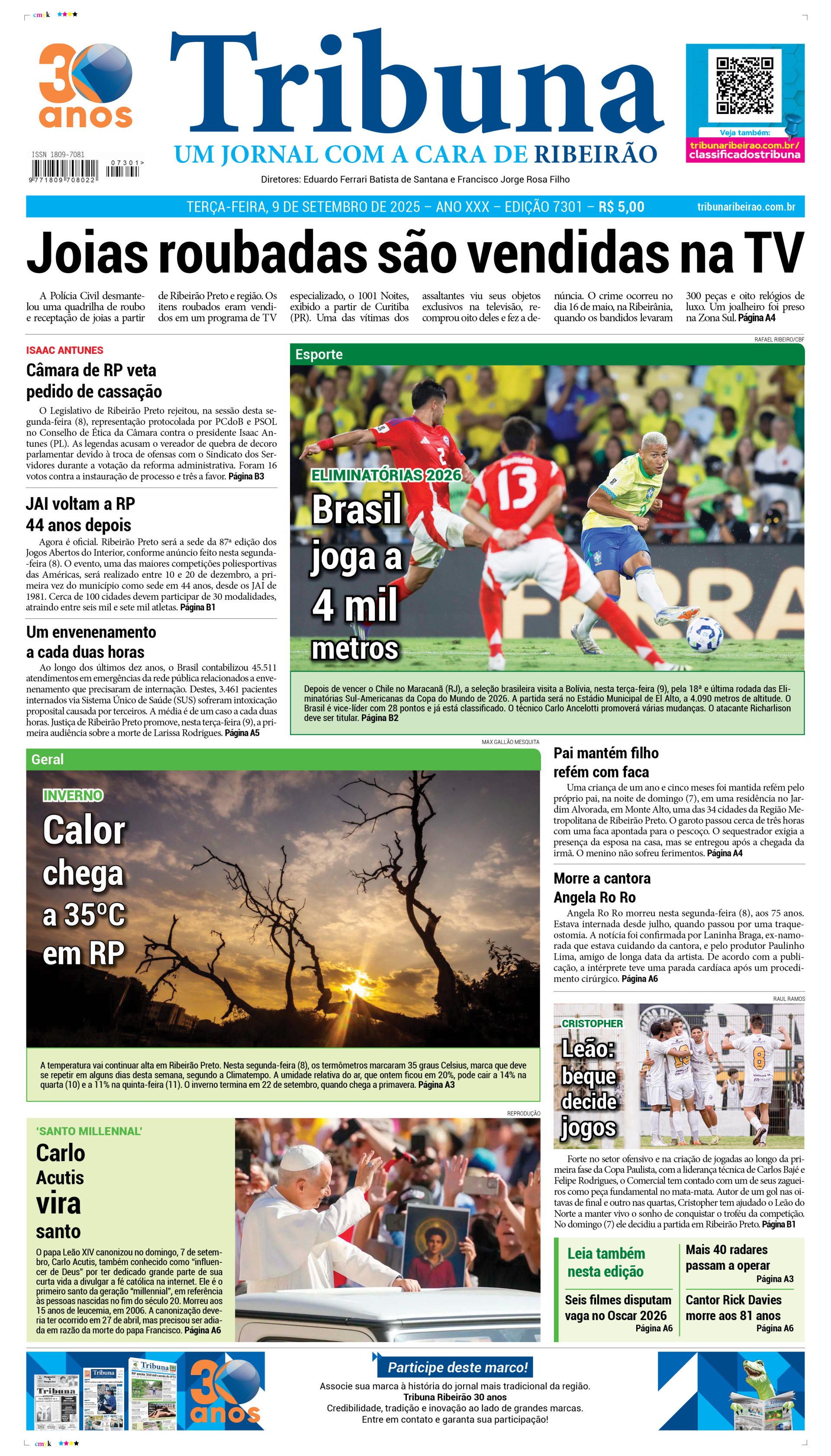 Capa do dia 9 de Setembro