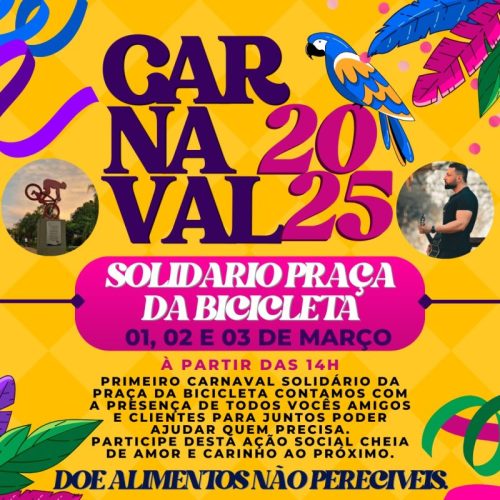 Carnaval Solidário 2025 Praça da Bicicleta irá arrecadar alimentos para o Fundo Social