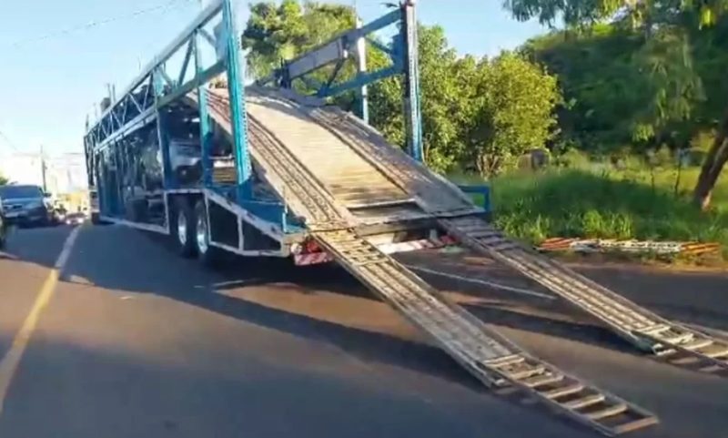 Ninguém ficou ferido no incidente. Também não há registros de danos materiais ao caminhão-cegonha ou ao trecho interditado.