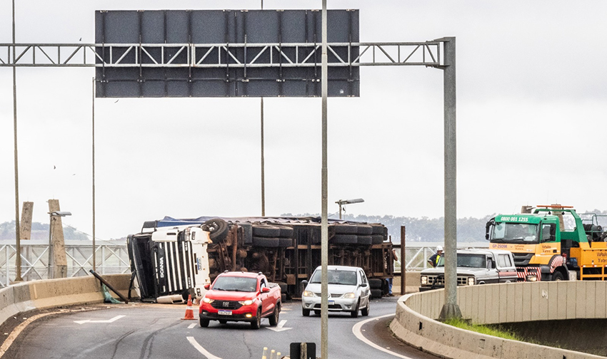 O trânsito intenso causou lentidão no local do acidente. Não há registro de feridos. A suspeita é que a pista molhada tenha contribuído para o acidente. As causas serão apuradas.