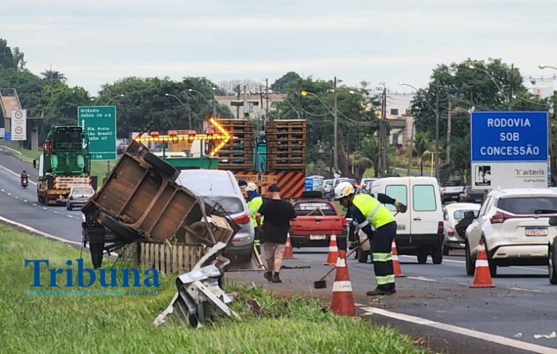 O veículo seguia para Uberaba com cinco ocupantes. Por motivos a serem esclarecidos, o reboque teria se movimentado bruscamente, batido contra defensa metálica do canteiro central, capotado e parado atravessado na pista.