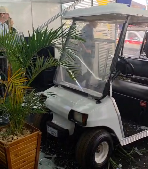 Um carrinho elétrico invadiu, na manhã desta segunda-feira (27), a sala de imprensa nas dependências da Agrishow. Segundo informações de pessoas que presenciaram o acidente, um suposto erro na marcha do veículo teria causado o acidente.