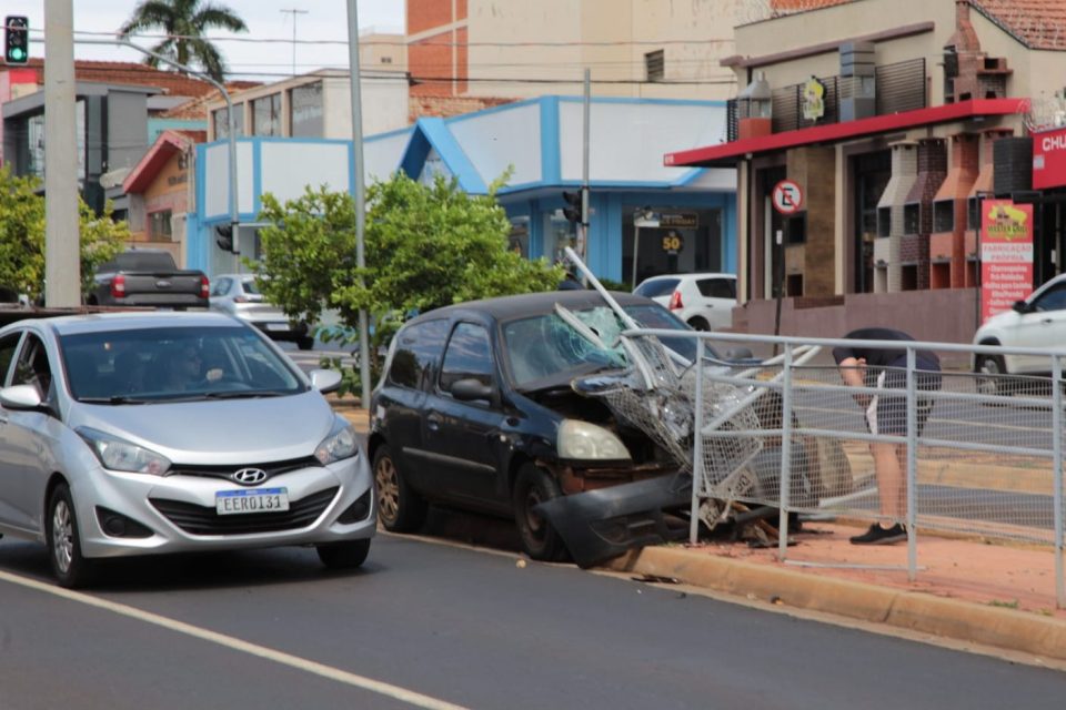 Carro bate em canteiro central de avenida
