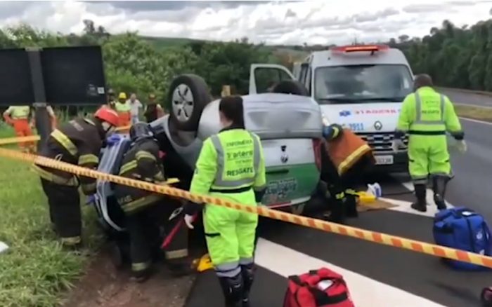 Um carro capotou na Rodovia Antônio Machado SantAnna, em Ribeirão Preto, na tarde desta quarta-feira (22).