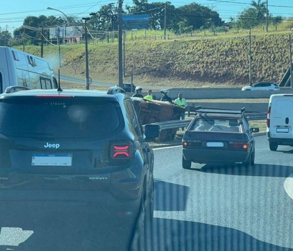 Um veículo capotou, na manhã desta segunda-feira (24), na alça de saída da Rodovia Antônio Duarte Nogueira (SP-322), Anel Viário Sul. O acidente ocorreu na altura do km 313,357 da pista sentido Rodovia Antônio Machado Sant’Anna (SP-255).