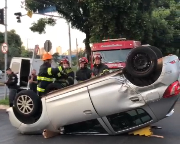 Um veículo capotou, na manhã desta segunda-feira (26), após uma colisão. A batida ocorreu na Via Francisco Magioni, no início da Via Norte, cruzamento com a rua Barão de Cotegipe, Vila Tibério, zona Oeste da cidade.