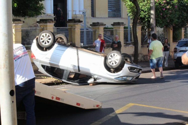 Um acidente envolvendo dois veículos fez com que um deles capotasse e fosse parar com as rodas para cima na calçada da Escola Técnica Estadual (ETEC) José Martimiano da Silva, o antigo Colégio Industrial.