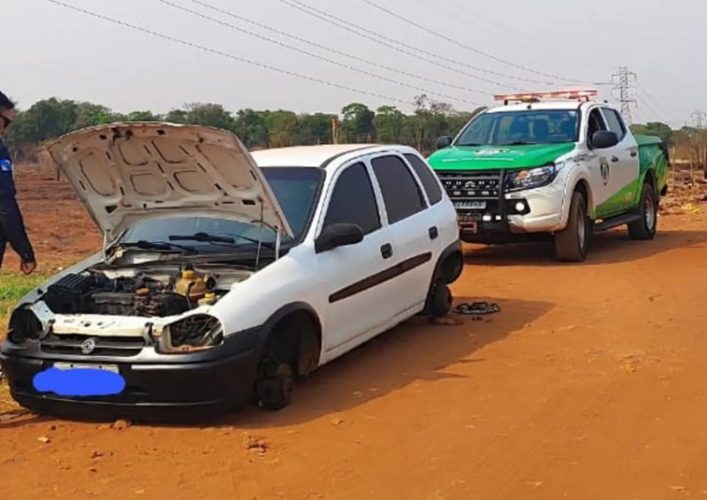 Veículo foi abandonado em estrada vicinal e estava sem vários acessórios