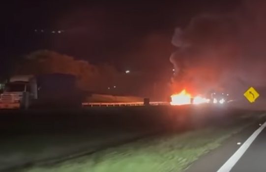 Incêndio causou interdição de uma pista da rodovia, mas não houve feridos