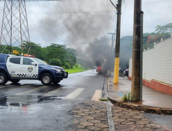 Um veículo pegou fogo, no final da manhã desta terça-feira (3). A ocorrência foi registrada na Rua Dom Luís do Amaral Mousinho, Castelo Branco Novo, zona Leste de Ribeirão Preto.