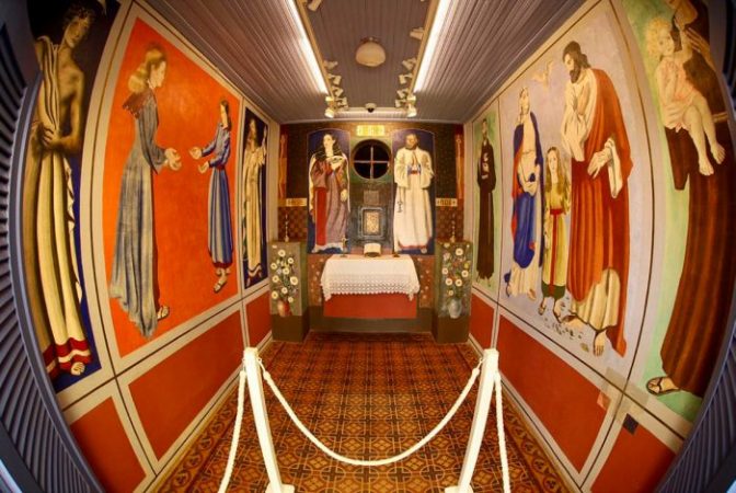 Candido Portinari mandou construir, em 1940, uma capela ao lado da casa da avó Pelegrina, que por conta da idade e problemas de saúde não conseguia se locomover até a igreja para orar. Nas paredes estão os santos prediletos da avó, retratados pelo artista com a fisionomia de amigos e parentes. A obra terminou em 1941. A Capela da Nonna é um dos principais espaços do Museu Casa de Portinari.