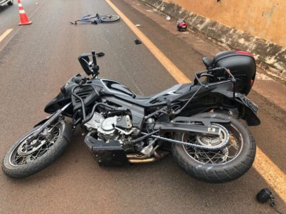 Um casal foi ferido após a motocicleta em que eles estavam ser atingida por um quadro de uma bicicleta nas proximidades da passarela Wilson Toni, na rodovia Antônio Duarte Nogueira, zona Sul de Ribeirão Preto .