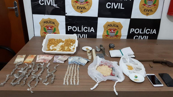 Na residência, os policiais civis encontraram 51 pinos de cocaína, 232 gramas de crack, 230 gramas de cocaína em pó e 84 gramas de maconha em pequenas porções. A droga foi apreendida, juntamente com celulares.