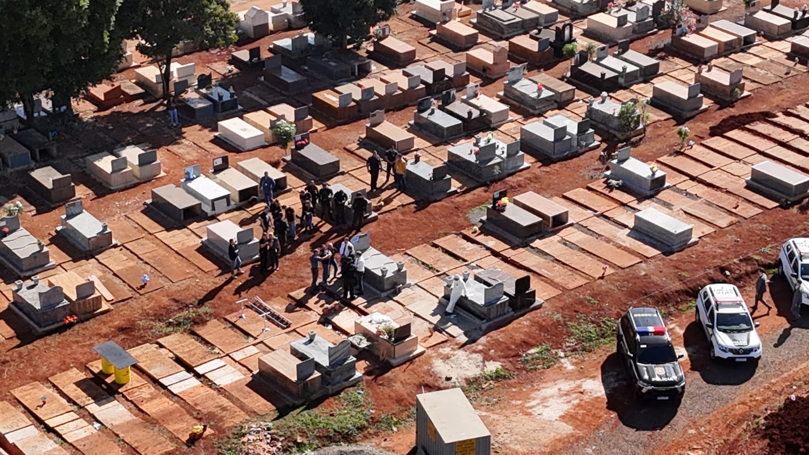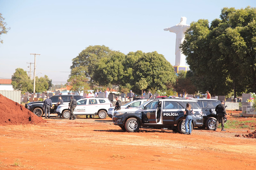 Exumação – O trabalho de exumação no corpo de Nathalia durou pouco mais de uma hora. Um rigoroso esquema de segurança foi montado, para garantir os trabalhos.