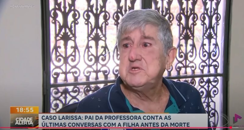 A repórter Ludmila Osório, do Cidade Alerta, da TV Record, entrevistou, nesta segunda-feira (12), com exclusividade, o pai de Larissa, Sebastião Rodrigues. O homem continua muito abalado com a morte da filha.