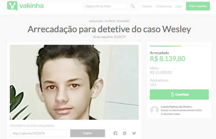 O link da campanha é https://www.vakinha.com.br/vaquinha/arrecadacao-para-detetive-do-caso-wesley