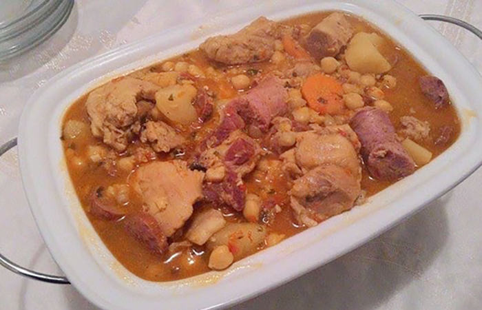 Separe a água do cozimento do grão de bico para cozinhar as carnes.